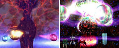 You don't get a good look at the Wave Existence in Xenogears like you do U-DO in Xenosaga. In particular you don't ever really see the "waves." They emanated from Id earlier, like they emanated from Neo Yuriev in Episode III. But here, at least, you see that those purple waves coming from Deus look exactly like the ones in Xenosaga, if you look at the pictures. It's pretty cool when you think about it, because it sort of means that the red background inside Deus' core (when you fight it) are most likely the Wave Existence's "waves," similar to those U-DO waves that appeared at Ariadne and Old Miltia when Shion summoned the Gnosis. Only they couldn't animate that Deus background on the PS1. Obviously, Arai (the director), wouldn't miss something like that since he was responsible for the artistic design in Xenogears.